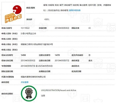典型的集體商標,那非“沙縣小吃”不可。沙縣小吃同業(yè)公會1998年注冊了“沙縣小吃”服務商標,2006年又注冊了“沙縣小吃同業(yè)公會及圖形”集體商標,審定服務項目為餐館、飯館、流動飲食供給、咖啡館、雞尾酒會服務等。