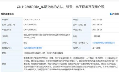 近日,北京百度網(wǎng)訊科技有限公司公開“車輛充電的方法、裝置、電子設備及存儲介質”發(fā)明專利,公開號CN112895925A,申請日期為2021年1月。