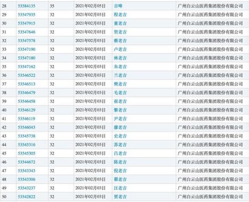 “蕭老吉、程老吉、趙老吉、孫老吉……”中國商標網公開信息顯示,這些商標均是在2021年2月3日一天之內申請的,共計100個。且這些商標申請的均非30類涼茶商品,而是在32類啤酒、茶味非酒精飲料、果汁等商品中。