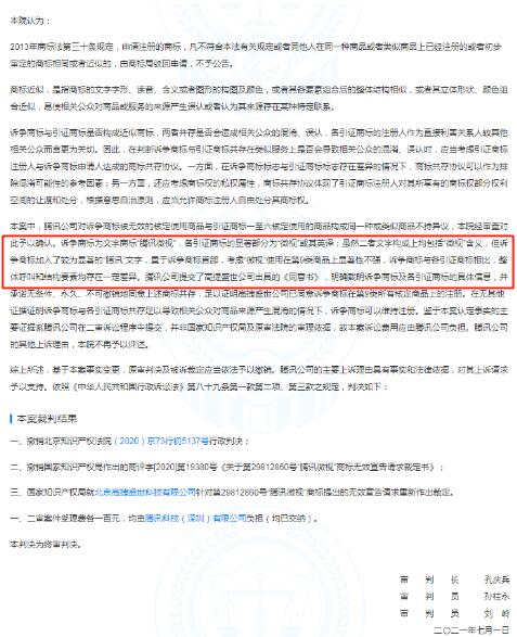 騰訊科技(深圳)有限公司公開多條與國家知識產(chǎn)權(quán)局等二審行政判決書公開,案號分別為(2021)京行終2833號、(2021)京行終2839號、(2021)京行終2690號,審理法院均為北京市高級人民法院。