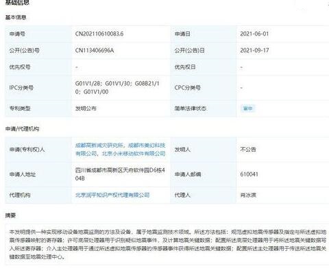 近日,“實現移動設備地震監測的方法及設備”發明專利被公開,所屬北京小米移動軟件有限公司,公開號為CN113406696A。