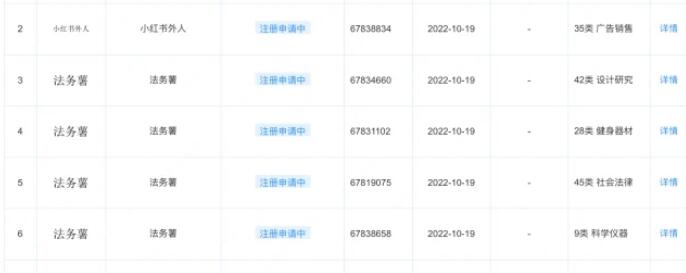近日,小紅書科技有限公司申請注冊多個“法務薯”商標,國際分類包括社會法律、科學儀器、辦公用品等,目前商標狀態均為注冊申請中。