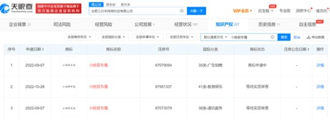 近日,三只羊公司再次申請注冊多枚“瘋狂小楊哥”商標,并申請注冊“小楊哥專屬”“三只羊專屬”商標,國際分類涉及教育娛樂、方便食品、健身器材等,當前商標狀態均為申請中。