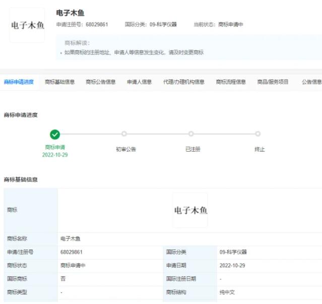 電子木魚已被申請商標