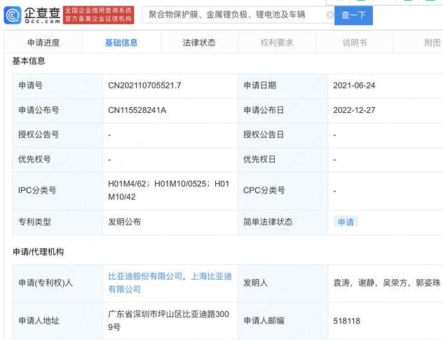 企查查APP顯示,近日,比亞迪(002594)、上海比亞迪有限公司“聚合物保護(hù)膜、金屬鋰負(fù)極、鋰電池及車輛”專利公布。企查查專利摘要顯示 ,所述聚合物保護(hù)膜由聚合物A和聚合物B的組合物組成,其中,聚合物B為導(dǎo)電聚合物,聚合物A的結(jié)構(gòu)式如下:或本申請(qǐng)的聚合物保護(hù)膜中聚合物A能夠有效傳導(dǎo)鋰離子,促進(jìn)鋰離子傳輸,抑制鋰枝晶的形成,同時(shí)還有能夠改善聚合物保護(hù)膜的柔性,有利于適應(yīng)鋰金屬的膨脹;聚合物B有利于鋰離子分布均勻,進(jìn)而提高電池的安全性能和循環(huán)性能。